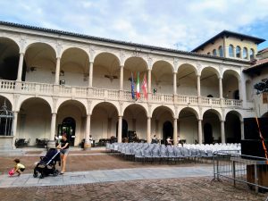 Maria Giovanna Virgili, in un suo saggio sulla Piazzetta delle Erbe, ricorda che i consoli del Paratico erano tenuti a provvedere a ciò che era necessario al buon funzionamento del portico e ai necessari restauri (nella foto il palazzo ai nostri giorni). Tra le clausole della vendita si stabiliva: “che non si impedisca in alcun modo il passaggio; che non sia lecito tenervi cloache (scoli a cielo aperto) né si butti sporcizia dal solario, il quale non poteva elevarsi a più di due piani, con esclusione di qualsiasi torre o fortificazione; sotto il soffitto, fatto di travi, non era lecito fare tramezzi di muro né scale se non di legno, in modo tale da non impedire l’uso pubblico, così come nessuna parte doveva estendersi verso le vie adiacenti”.