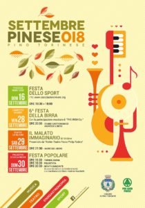 Le manifestazioni inizieranno domenica 16 settembre: nel piazzale della piscina Moby Dick (dalle 10.30 alle 18) si terrà l’immancabile Festa dello Sport, in cui sarà possibile assistere a dimostrazioni di tante Associazioni Sportive Pinesi.