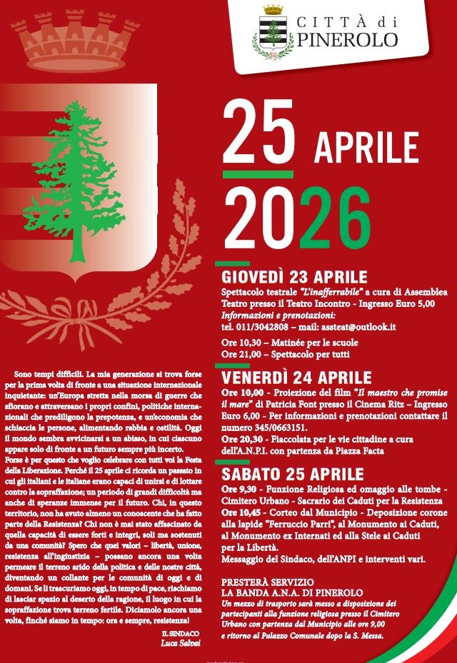 Buttigliera d’Asti. Operaio con il braccio incastrato in una macchina. Con l’elisoccorso al CtoGranfondo Torino: domenica 19 aprile il ciclismo amatoriale di massa per le strade del Chierese e dell’AstigianoDonna di 41 anni di Chieri trovata in fin di vita sul bus a Torino. Morta poco dopoSicchiero: “In prima fila per l’ospedale a Cambiano? C’è fiducia, ma che sarĂ dell’ospedale di Chieri?” PIEMONTE ARTE: UNIA, GRIFFA, EXPOSED, ARTE DI LANGHE E ROERO, NOVELLI, ART OF GAZA, GONIN, MILANI…Chieri Classica. A San Filippo concerto del Duo AntonelliPinerolo. 25 Aprile 2026 – Festa della LiberazioneProrogata al 16 aprile la scadenza del Bando per il Servizio Civile Universale al Comune di PinoPino Torinese. Via dei Castagni chiusa alle auto fino al 20 aprileChieri e dintorni. In piazza per la Giornata dell’Energia SocialeChieri. Alpini: Forti come la MontagnaAlba: fino al 10 maggio parcheggio gratuito nell’area Inail in piazza Prunotto.Bra: “I libri e le rose”Chieri. Ecco il NICE Festival al Parco RobinsonCondove. Bambino di 3 anni cade dal divano: con l’elisoccorso al Regina Margherita per un trauma cranicoButtigliera d’Asti. Operaio con il braccio incastrato in una macchina. Con l’elisoccorso al CtoBalangero. Cade dalla Vespa, 33enne in codice rosso al San Giovanni BoscoPino Torinese, Fratelli d’Italia: “Cantieristi finanziati dalla Regione Piemonte mal equipaggiati dal Comune di Pino e costretti a lavorare in assenza di sicurezza.”Torino consegna la pergamena della CittĂ a Claudio Baglioni che chiuderĂ il suo GrandTour in piazza S. Carlo il 18 settembreChivasso accoglie la campionessa italiana di nuoto Lara Ariagno.Novara. Dal 1° Maggio parte la seconda fase della ZTLChieri ’76 ospita il Bisonte Firenze per l’ultima giornata della fase a gironi dei Playoff ChallengePecetto. Ecco le strade chiuse domenica per la Camminata tra i Ciliegi in Fiore1234512345678 Visto da: 339.896