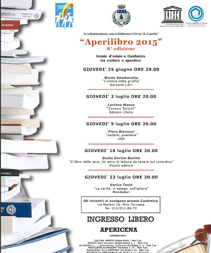 pino aperilibroL’Associazione Vivere organizza l’ottava edizione dell’Aperilibro presso i locali di CasAmica in via Martini 16.