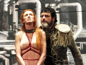 Ho immaginato una Tebe post industriale – spiega Viecca -dal cielo plumbeo e rosso dei bagliori del fuoco. Mi interessa immaginare ciò che c’è fuori dalla reggia di Creonte, immaginare i risultati del suo arido modo di governare, attento a difendere i suoi confini, a creare leggi ad hoc per mantenere il potere, “dando l’esempio”, ma di fatto riconducendo la sua politica ad uno stato del terrore. Il modo di pensare al “bene della città” di Creonte, a questo drogato concetto di ragion di stato, capace soprattutto di cristallizzare la vita sociale ed evolutiva della stessa, trascinando Tebe in un’ipotetica crisi economica, ecologica, culturale, di fatto distruggendola, mi ricorda molto quello che sta accadendo oggi, o che (siamo nel campo dell’immaginazione, o almeno spero) potrebbe succedere al nostro mondo, dove i potenti sono attenti solo al dato economico, inteso come mantenimento del proprio status, incapaci di attivare politiche di crescita e sviluppo. Antigone, rea di avere seppellito il fratello, in questo scenario assume il ruolo di scomodo personaggio da piegare, e forse da uccidere; lei, caduta in disgrazia, ma figlia di Re, forse più degna dello stesso Creonte di regnare su Tebe, non si piegherà, non accetterà di diventare strumento nelle mani del tiranno, anzi! rinuncerà persino all’amore corrisposto di Emone, figlio di Creonte, pur di non accettare nulla che possa venire dal Re oppressore. Antigone la reietta, la malaccolta, ma colei che ha diritti umani, famigliari e di appartenenza a quello stesso consorzio cittadino di Tebe, si lascia morire. Creonte pensa allo splendore della sua città e all’eredità di potere e ricchezza che lascerà a suo figlio, ma Emone si uccide per aver perduto Antigone, e il trono del tiranno si trasforma in una sedia a rotelle, mentre su Tebe cade una pioggia acida di fuoco e metano.