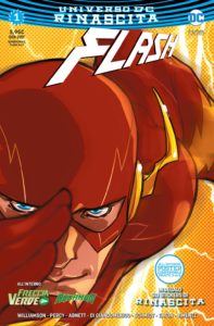Flash, il Velocista Scarlatto, è un’icona del fumetto supereroistico. E’ anche uno dei primi supereroi ad essere stato creato. La sua prima pubblicazione – su Flash Comics nr. 1 – risale infatti al 1940, appena due anni dopo l’uscita di Superman. In 76 anni di pubblicazioni sotto la sua maschera rossa si sono alternate ben 4 identità: il primo fu Jay Garrick, eroe della Golden Age (1940 – 1955), seguito da Barry Allen nella Silver Age (1956 – 1986) e poi da Wally West (1987 – 2006), nato inizialmente come spalla dello stesso Barry. Negli anni 2006 e 2007 il posto di Flash viene preso da Bart Allen, un supereroe proveniente dal futuro. Nel 2008 è tornato Barry Allen, il Flash più famoso e amato dai lettori, creato nel 1956 da Gardner Fox e Robert Kanigher ai testi e disegnato da Carmine Infantino, uno dei più importanti disegnatori della Silver Age. Ed è un altro Carmine – l’italiano Carmine Di Giandomenico – a tenere a battesimo l’ultima versione di Flash che debutta in questi giorni in edicola: Flash 1 Universo DC Rinascita.