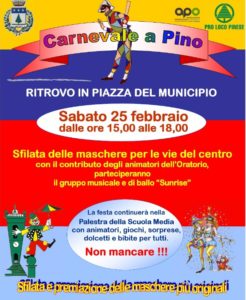 Pino Torinese, sabato 25 febbraio festa di carnevale con la Pro Loco