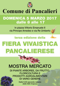 kermesse, ma ci sono anche le tante specialità enogastronomiche che arricchiscono la cultura materiale di paesi e città dell’Italia intera. Nelle due edizioni precedenti la fiera ha avuto un buon successo commerciale, testimoniato dalla conferma della presenza di molti espositori già protagonisti della Fiera nel 2015 e nel 2016 e dall’annuncio di molte “new entry”. Ad aggiungere interesse alla giornata il sarà il raduno delle Fiat 500 d’epoca, un sicuro richiamo per qualsiasi manifestazione fieristica. Per saperne di più: www.comune.pancalieri.to.it