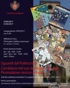 Come promuovere visivamente il patrimonio storico artistico e culturale di una città ed il suo territorio, in particolare di Cambiano? Una domanda alla quale ha risposto il progetto di workshop “La Pagina come Racconto Visivo 2016-17” avviato dal Politecnico di Torino – Dipartimento di Architettura e Design, che ha coinvolto gli studenti dei corsi di laurea, Architettura Costruzione Città, Architettura per il Restauro e la Valorizzazione del Patrimonio, Architettura Sostenibilità, Design sistemico. Il gruppo di lavoro coinvolto sono la Prof.ssa Anna Marotta, arch. Ornella Bucolo, arch. Daniela Miron e i docenti esterni, arch. Claudio Rabino e arch. Claudio Multari. Direttore del Dipartimento Prof. Paolo Mellano. I futuri architetti del polo torinese hanno lavorato alla traduzione pratica del concetto di “racconto visivo” per evocare nella moderna realtà comunicativa la storia di Cambiano e del suo territorio culturale ed artistico. Un progetto che si presenta come un vero e proprio “ponte” fra l’apprendimento teorico e pratico fornito dal Politecnico e l’approccio con la realtà del territorio cambianese. Gli studenti del workshop, che si è svolto a fine settembre 2016 al Castello del Valentino, hanno affrontato lo studio della promozione del patrimonio artistico culturale di Cambiano attraverso la realizzazione di pannelli espositivi permanenti da collocare in diversi punti del territorio comunale e lo studio di format per brochures illustrative e promozionali con inedite soluzioni comunicative. In sintesi, se volessimo riportare, dalla teoria alla prassi, il pensiero della prof.ssa Anna Marotta, potremmo dire che “ogni momento in cui vediamo, ogni atto visivo e percettivo, non è molto diverso dalla più generale visione del mondo, come concezione della vita che ognuno di noi possiede. Quindi la comunicazione visiva é indispensabile nella formazione di architetti e professionisti, ma anche per educare ad aprire gli occhi nella realtà, in tutte le sue forme. Poiché la visione è un mezzo forte per comunicare con il mondo, e lo stesso vale per la narrazione visiva quale strumento per comunicare, qui viene applicata per dialogare con i propri cittadini e visitatori e per meglio condividere in modo più ampio e approfondito le peculiarità di Cambiano, ma anche l’identità e la dimensione etica del suo territorio culturale”. L’esposizione degli esiti del workshop, “Sguardi dal Politecnico: Cambiano nel suo territorio culturale. Promozione storico-artistica.” verrà fatta alla cittadinanza cambianese venerdì 10 marzo alle ore 21 presso la Biblioteca comunale F.lli Angelo e Stefano Jacomuzzi . La mostra resterà in esposizione fino al 31 marzo. Verranno esposti i pannelli espositivi e le brochures e gli stessi studenti presenteranno il concept progettuale da loro seguito per la concretizzazione dei progetti. Una prima esposizione è stata fatta fra le sale del Castello del Valentino nella prima settimana di febbraio. (Nella foto sotto: il gruppo di lavoro)