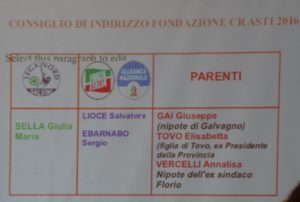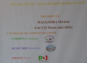 Non è un caso che Fabrizio Brignolo sia stato il primo, e finora unico, presidente di Provincia dichiarato decaduto a seguito di un nostro ricorso in tribunale che ravvisava l’incompatibilità tra la carica politica e quella di consigliere nella Fondazione bancaria della CRAsti. Se guardiamo l’organigramma della Fondazione vediamo che attualmente ne fanno parte un membro del PD (Sergio Tirone), uno della Lega Nord (Giuseppe Cardona) ed uno della lista Berlusconi (Domenica Cardona). Nel Consiglio di indirizzo della Fondazione sono inoltre rappresentati Forza Italia e Alleanza Nazionale, oltre ad una schiera di parenti di ex sindaci ed ex presidenti della provincia.”