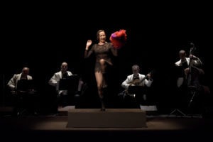 In uno spazio essenziale, accompagnata da un prezioso ensemble strumentale, un quartetto composto da chitarra, fisarmonica, flauto traverso e contrabbasso, Maddalena Crippa, nella doppia veste di narratrice e cantante, racconta la storia e interpreta le canzoni de “La Vedova Allegra”, evocando con leggerezza e divertimento le atmosfere dei cabaret berlinesi e dei cafè chantant parigini. Alternando le parti recitate, frammenti di dialoghi e monologhi tradotti dal libretto originale di Leon Stein e Victor Leon, alle parti cantate, arie e duetti, l’attrice si sdoppia e dà voce e carattere sia ad Anna Glavari che al principe Danilo.
