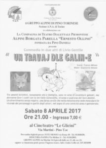 Sabato 8 aprile alle h.21,00 al Teatro Le Glicini il Gruppo Alpini di Pino ha promosso uno spettacolo teatrale in piemontese messo in scena dalla Compagnia Ernesto Ollino di Torino.