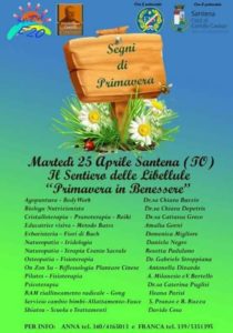 A Santena, in Piazza Martiri, martedì 25 aprile , una fiera all’insegna delle novità: dalle ore 8 alle 20, si potrà visitare il Padiglione “Il percorso delle libellule” – Primavera in…benessere, per il corpo e per la mente. Info: 340-41615013 – 339-5351395