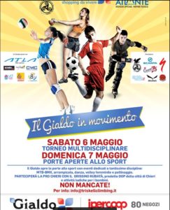 Sabato 6 e domenica 7 maggio, “Il Gialdo in movimento”: sabato 6 maggio torneo multidisciplinare, domenica 7 porte aperte allo sport: eventi dedicati a Mtb-Bmx, arrampicata, danza, volley femminile e pattinaggio. Parteciperà la Pro Chieri con il grissino rubatà e attività ludiche per bambini. Info: info@triskellclimbing.it