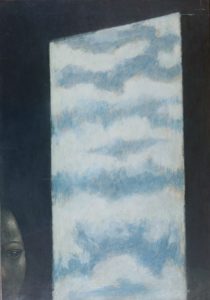 E i fiori in un secchio di plastica, un angolo dello studio con oggetti, volti, brocche e scale, un cielo percorso da grandi nuvole, esprimono i momenti di un dipingere sensibile al variare della luce e delle stagioni.