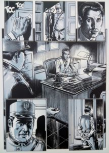 Daniele Bigliardo è stato il primo a studiare l’interpretazione grafica del personaggio. “E’ stata una grossa responsabilità” ricorda mentre disegna in diretta per il pubblico, “ognuno di noi è un mondo. Noi siamo abituati a pensare all’eroe bello, prestante, forte e allegro, mentre De Giovanni non lo voleva particolarmente bello, anzi doveva avere le spalle strette e lo sguardo sempre triste”.