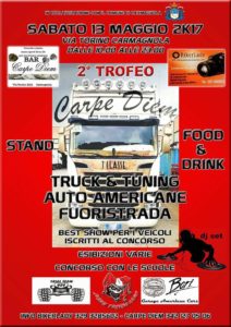 Sabato 13 maggio si svolgerà la seconda edizione del Trofeo Carpe Diem in via Torino che sarà chiusa al traffico dalle 14 alle 23  la festa voluta dai proprietari del bar Carpe Diem  e Raffaele Virdo’ della Virdo’ Autotrasporti una festa tra pochi amici che  la scorsa edizione ha visto numeri d’eccellenza circa 400 mezzi presenti dalle 2 alle 16 ruote ,le grandi protagoniste. Gli organizzatori sono sicuri di poter migliorare questi numeri e dare alla via grande lustro, per questo hanno chiesto ai negozi di rimanere aperti e ci saranno inoltre numerosi stand . La responsabile e coordinatrice dell’evento Loredana Marchetti in collaborazione con la Citta’ di Carmagnola e la neonata associazione negozianti “le porte di Carmagnola” l’Associazione Lame  ci racconta quale sarà il programma di intrattenimento.