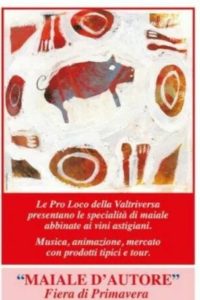 Continua anche oggi, domenica 14 maggio, la Festa di Primavera della Valtriversa a Villafranca d’Asti con l’appuntamento “Maiale d’Autore”. La festa si è aperta sabato con la Fiera dedicata ai prodotti tradizionali della Valtriversa, rinomata per i suoi salumi e le carni suine.