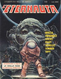 “El Eternauta” è stato pubblicato per la prima volta in Argentina a puntate sulla rivista “Hora Cero Suplemento Semanal” dal 1957 al 1959. Ideato e sceneggiato da Héctor Germán Oesterheld e disegnato da Francisco Solano López, costituisce un lungo romanzo di fantascienza a fumetti, ambientato a Buenos Aires e che inizia con una nevicata mortale, preludio di una invasione aliena. I pochi uomini sopravvissuti si ritrovano a lottare, prima per la sopravvivenza e poi per resistere agli attacchi degli inquietanti “mano”, un popolo evoluto che controlla gli inesauribili “cascarudo” (scarafaggi giganti) – dotati di micidiali cannoni spara raggi – e i mostruosi “gurbo” giganti. I Mano trasformano gli uomini catturati in docili robot e si servono di macchine creatrici di illusioni. A loro volta sono però controllati dai potentissimi “Loro”, un popolo alieno che non si mostra mai, i veri dominatori dell’universo.