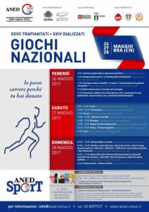 Bra sarà capitale dei Giochi nazionali dei trapiantati e dei dializzati, da venerdì 26 a domenica 28 maggio, organizzati per promuovere la donazione ed il trapianto attraverso lo sport. Un’occasione per riflettere sull’importanza della donazione di organi, grazie alla quale tanti possono tornare a vivere pienamente. A promuovere la manifestazione sono l’Aned, Associazione nazionale emodializzati dialisi e trapianto Onlus, ed il Comitato speciale Aned Sport, in collaborazione con Regione Piemonte, Comune di Bra, Centro nazionale trapianti e Coni, con la partecipazione dell’Aido, Associazione Italiana per la donazione di organi, tessuti e cellule. Si tratta di manifestazioni sportive consolidate nel tempo: i Giochi Nazionali Trapiantati sono alla 27a edizione, mentre i Giochi Nazionali Dializzati alla 24a. Atleti trapiantati di ogni organo ed età e pazienti dializzati provenienti da tutte le regioni d’Italia gareggeranno per dimostrare il miglioramento della qualità di vita, che è possibile raggiungere grazie al trapianto. Queste le specialità sportive nelle quali si cimenteranno: atletica leggera, nuoto, ciclismo, volley, tennis, tennis da tavolo, bocce. Il presidente Aned, Giuseppe Vanacore, spiega che «lo scopo dei Giochi è di promuovere la cultura della donazione e diffondere maggiore consapevolezza sugli straordinari risultati ottenibili con il trapianto. L’attività sportiva in generale è fonte di benessere, per le persone dializzate e trapiantate, i giochi nazionali sono l’occasione per vincere i vincoli della malattia, favorendone, attraverso lo sport, il recupero sociale e clinico nonché il miglioramento della qualità di vita. Quest’anno si è voluto sottolineare anche l’importanza dell’alimentazione, che non deve essere una condanna per i malati nefropatici, sottolineando che anche per loro è possibile riscoprire il “gusto” senza rinunciare al una alimentazione “sana”». Il dottor Alessandro Nanni Costa, direttore del Centro nazionale trapianti, sottolinea che «praticare attività sportiva rappresenta, per molti trapiantati, un percorso di recupero e benessere, ma anche un mezzo per testimoniare al pubblico l’efficacia del trapianto. Il Centro nazionale trapianti opera costantemente per favorire ha voluto verificare scientificamente l’efficacia dell’attività fisica e sportiva sui pazienti trapiantati, attraverso test e analisi specifiche. Abbiamo dimostrato, ad esempio, che la funzionalità di un rene trapiantato durante uno sforzo fisico è uguale a quella di una persona non trapiantata».