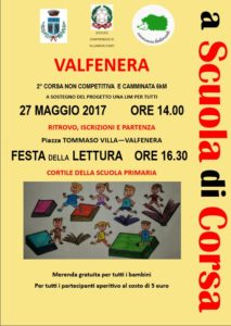 L’Istituto comprensivo di Villanova d’Asti e Camminare lentamente organizzano una Camminata e Corsa non competitiva sabato 27 maggio. Il percorso di circa 6 Km, con un leggero dislivello, si snoda tra il centro del paese e la campagna circostante. Al termine ci sarà una dimostrazione sul corretto uso della bicicletta con la possibilità di provare un circuito in tutta sicurezza. Saranno allestiti punti di ristoro con merenda gratuita per tutti i bambini e un grandioso aperitivo al costo di 5 euro.PRE – Iscrizioni: presso la scuola primaria di Villanova d’Asti e dell’infanzia di Valfenera a partire dal 2 maggio e all’indirizzo camminarelentamente2@gmail.com.