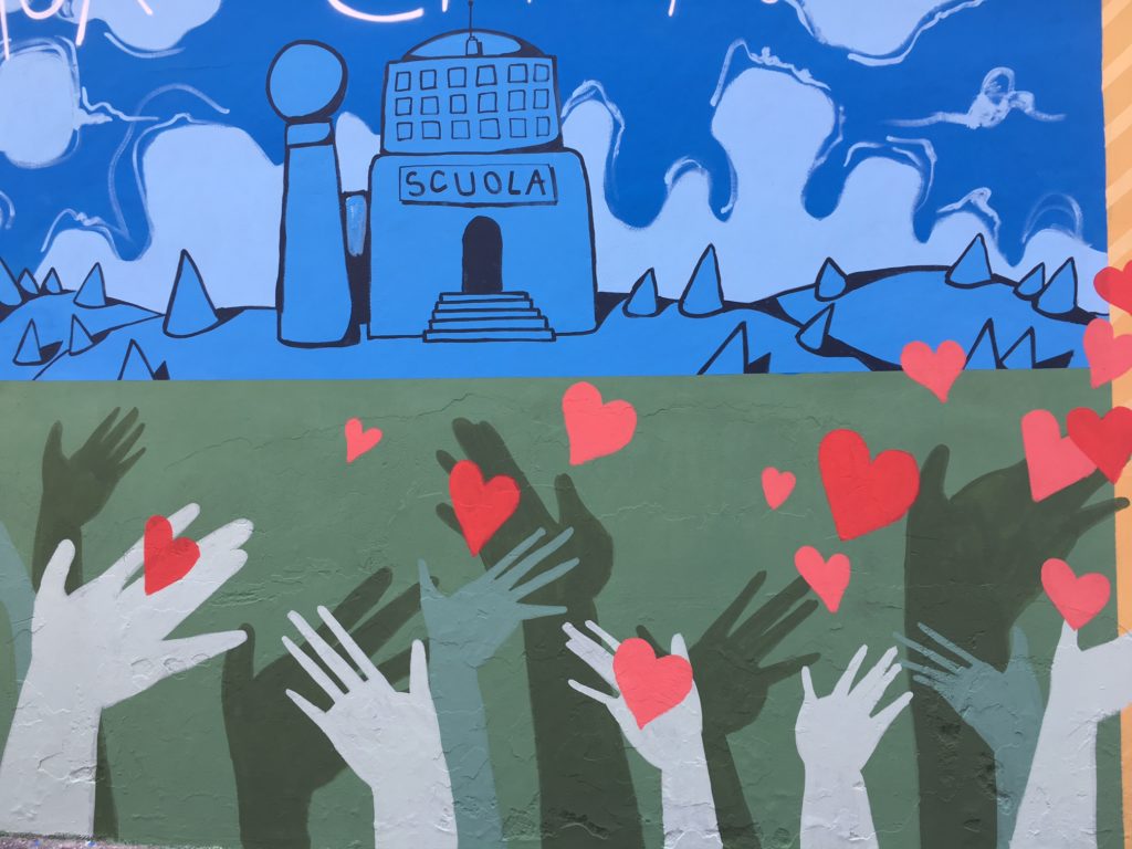 Un murales di 30 metri è stato dipinto dagli allievi del CIOFS Santa Teresa sulla parete che delimita l’Istituto Salesiano da quello del Cottolengo. Le immagini raffigurano ciò che rappresenta i giovani: la musica, lo sport, la scuola, la formazione ad un mestiere, gli ambienti nei quali vivono – la città e la campagna – e i valori ai quali credono: la solidarietà, l’amicizia e l’amore. Non poteva mancare un omaggio ai due Patroni, san Giovanni Bosco e  san Giuseppe Benedetto Cottolengo, con le frasi che hanno caratterizzato la loro missione. La prima del Santo dei giovani: “L’educazione è cosa di cuore e le chiavi del cuore le possiede solo Dio”. La seconda del Santo della Carità e della Provvidenza: “L’amore di Cristo ci spinge”.  Una settimana di lavoro per esprimere la vita, per rintracciare dentro di sè attitudini e capacità non conosciute o delle quali non c’è mai stata possibilità di sviluppo, un’occasione per riflette su valori importanti. Una settimana per lavorare insieme, collaborare e crescere. Un grazie va a Fijodor Benzo, esperto in street art, che ha saputo guidare i ragazzi  nella realizzazione di quest’opera che ha il duplice pregio di aver reso decorosa un’area da tempo trascurata e di aver fatto emergere il talento dei giovani.