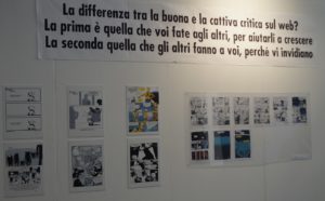 A Roberto Recchioni, la “Rockstar del fumetto italiano”, come veniva definito sul programma ufficiale del festival, è stata dedicata un’ampia e ricca mostra personale. Sottolineo il termine personale perché nel percorso espositivo, fatto di più sale, si potevano trovare non solo i suoi primi lavori da ragazzino, ma anche i suoi libri, i suoi primi fumetti, i giochi e gli oggetti da vero appassionato di comics, ma anche di cinema. A seguire tutti i suoi lavori, sia come sceneggiatore – a partire dai fascicoletti di Dark Side fino ai lavori per l’Eura, tra cui Detective Dante e John Doe, per arrivare all’ultimo Battaglia per la Cosmo – sia come disegnatore (Pugno e Asso) e copertinista. Una mostra interessante, soprattutto per scoprire – o riscoprire – i tantissimi lavori di un autore oggi divenuto famoso soprattutto per essere creatore di Orfani e curatore di Dylan Dog.