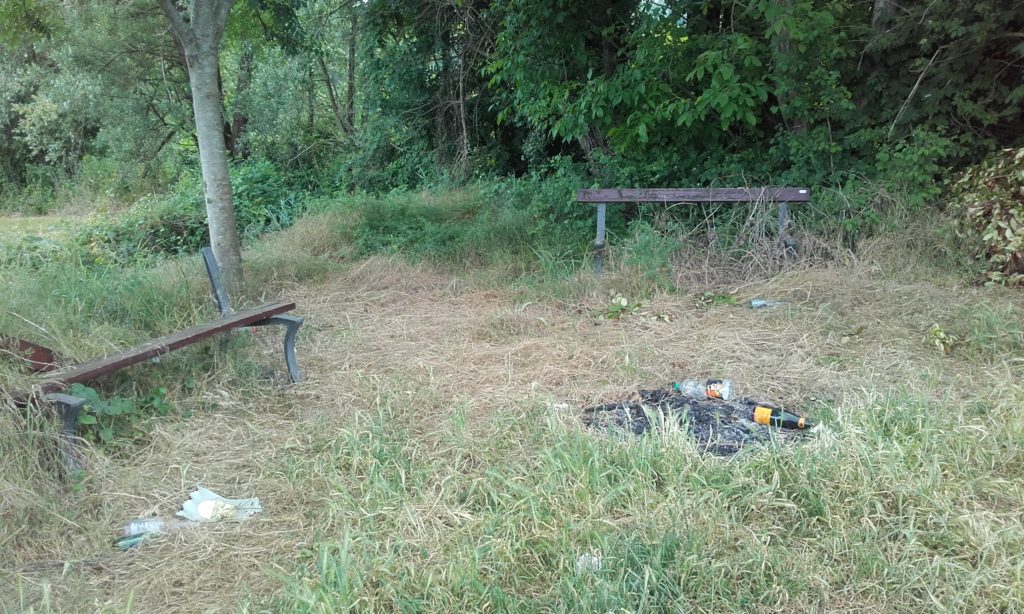 Bottiglie vuote, rifiuti, qualche pacchetto di sigarette e i resti di un falò testimoniano una serata passata tra amici ma anche lo scarso senso civico delle persone.