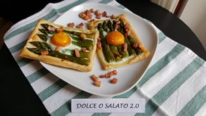 RETTANGOLI DI SFOGLIA CON ASPARAGI, UOVA, CRESCENZA