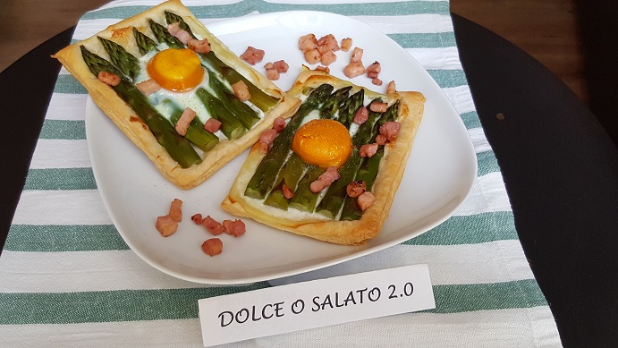 RETTANGOLI DI SFOGLIA CON ASPARAGI, UOVA, CRESCENZA