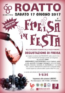 La 9° edizione di Freisa in Festa, organizzata dalla Pro Loco di Roatto, cade quest’anno in occasione del 500° anniversario della scoperta del vitigno. La festa è fissata per sabato 17 giugno nel suggestivo scenario di Piazza Piemonte affacciata sulla terrazza che offre uno dei belvedere più belli dell’astigiano.