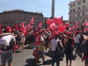 Questa mattina i manifestanti di Asti, tra i quali Dino Curcio, segretario Slc Cgil Asti e Marco Perello, Rsu Cgil Comdata, hanno sfilato, insieme alle migliaia di lavoratori provenienti da tutta Italia, partendo da piazza della Repubblica fino a confluire in piazza San Giovanni dove il segretario generale Camusso ha tenuto un comizio in difesa del patto sociale e della democrazia: