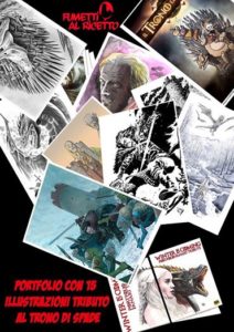 Il momento clou dell’evento dedicato al Trono di Spade sarà l’incontro con i fumettisti che hanno realizzato i disegni della mostra e con il doppiatore italiano di Jon Snow, Daniele Giuliani, domenica 25 giugno alle ore 15. A Games of Thrones sarà inoltre dedicato un portfolio con 15 illustrazioni realizzate da Dentiblù (alias Stefano Bonfanti e Barbara Barbieri, autori di Zannablù, Ed. Dentiblù), Andrea Broccardo (Dr. Strange, Marvel comics), Giuseppe De Luca (Dragonero, Sergio Bonelli Editore), Walter Trono (Dragonero, SBE), Luca Strati (Illustratore e docente Scuola Int. Comics), Salvo Coniglione (Le Storie, SBE), Mattia Surroz (Topolino, Disney – autore del disegno con protagonista Tyrion Lannister), Simone Garizio (Dragonero Young, SBE), Alberto Locatelli (Don Camillo, Renoir), Matteo Mosca (Mercurio Loi, SBE), Barbara Daniele (Le cronache di Van Helsing), Fabio Ruotolo (I custodi del Maser, Pavesio Editore), Ivano Codina (Il morto, Tiramolla), Giuseppe Candita (Julia, SBE) e Alessandro Piccinelli (nuovo copertinista di Zagor, oltre che disegnatore di TEX, SBE).