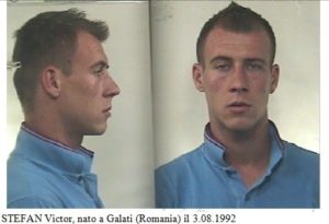 L’11 marzo 2015, alle ore 02.40 circa, quattro individui dell’est Europa perpetravano una rapina ai danni dell’attività commerciale denominata “Bowling Time”, ubicata all’interno del Centro commerciale il Borgo di Asti, in corso Casale. Il gestore dell’attività, unitamente ad un dipendente, poco prima dell’orario di chiusura, venivano avvicinati da due individui risultati essere di nazionalità rumena, presenti all’interno del locale ed intenti a giocare alle slot-machine, uno dei quali munito di arma bianca (presumibilmente un’accetta), i quali minacciavano il titolare ed il proprio dipendente al fine di farsi consegnare l’incasso giornaliero del bar e della sala giochi, cercando di evitare qualsiasi incauta reazione. Ai due rapinatori si affiancavano altri due soggetti, anch’essi stranieri, verosimilmente entrati dalla porta secondaria di ingresso, che partecipavano alla rapina. L’ammontare della rapina era di circa 5.000,00 euro, due I-phone6 ed un computer portatile, contenente le immagini registrate del sistema di sorveglianza del locale. Nonostante la mancanza delle immagini interne ed esterne dell’attività, il personale della Squadra Mobile della Questura di Asti, anche grazie al prezioso apporto del Gabinetto Provinciale di Polizia Scientifica, acquisiva elementi utili per l’identificazione di uno degli autori, STEFAN Victor, cittadino rumeno, pregiudicato per reati contro il patrimonio e senza fissa dimora. In particolare, una delle impronte (esaltata durante il sopralluogo di polizia) era utile a fini comparativi e riferibile al pollice destro del cittadino rumeno STEFAN Victor, soggetto con numerosi precedenti giudiziari e di polizia per reati contro il patrimonio.
