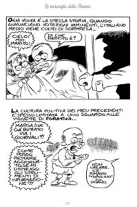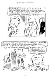 “Ho iniziato a scrivere questi racconti dopo aver finito il militare nell’aeronautica. Dopo aver perso tanto tempo avevo deciso che era venuto il momento di non perderne più. In realtà anche fare il militare mi ha aiutato” ha dichiarato Leo Ortolani che, prima dell’incontro, è stato ospite al TG3 Piemonte, dove ha chiesto di essere chiamato “fumettiere, perché un fumetto si prepara e poi lievita come il pane per il panettiere”. “In queste mini-storie ho scritto di argomenti di cui in genere si cerca di non parlare e di altri che invece si guardano con morbosità, la morbosità dell’italiano medio”. Leo Ortolani non è un moralista, come ha ricordato anche l’editore e presentatore Michele Foschini. “Ci ho messo il mio punto di vista” ha dichiarato Leo, “e anche un po’ di cattiveria, ma non troppa, per dare un po’ di sapore, come si fa con il rafano nel sushi o l’angostura nei cocktail. Ho cercato di dare tridimensionalità ad argomenti bidimensionali.”