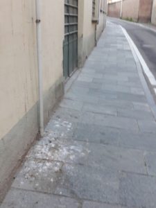 Chieri, Vicolo Albussano: marciapiede coperto da escrementi di piccione