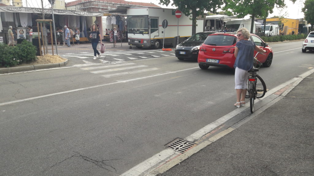 In Piazza Europa, davanti all’ex caserma dei carabinieri, c’era una volta un passaggio pedonale con strisce e scivolo. “Adesso, metà delle strisce sono scomparse e dall’altra parte, dove parcheggiano le auto di chi va al mercato, è comparso un segnale di stop con tanto di segnaletica a terra. Così, chi tenta di attraversare a piedi rischia davvero di essere messo sotto da entrambi i lati… Qualcosa non quadra: o spariscono del tutto le strisce pedonali e il relativo scivolo per le carrozzine o scompare lo stop e il conseguente passaggio delle auto in quel punto.” La lettrice che ci scrive allega questa foto, che chiarisce il problema. Adesso, si attende la soluzione.