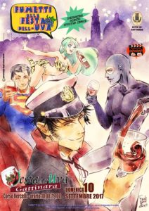 Un accostamento azzardato? Neanche per sogno, come dimostra il simpatico disegno della locandina, realizzato dalla bravissima Federica Di Meo in cui vediamo Superman, Lamù, Diabolik e Corto Maltese brindare con del buon vino rosso.