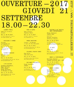 L’Associazione Tag – Torino Art Galleries presenta OUVERTURE 2017, iniziativa realizzata grazie al supporto di Fondazione per l’Arte Moderna e Contemporanea CRT.