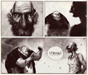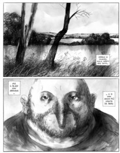Ho citato Gipi (con cui – curiosità – ha in comune lo stile di alcune tavole iniziali dei capitoli, piene di cielo e con il mondo schiacciato in basso) ma, parlando di BLAST, si possono tranquillamente citare altri noti fumettisti e capolavori del fumetto. Perché BLAST è un capolavoro. Certo, soffre della difficoltà dell’impatto iniziale, come ho già detto, e bisogna arrivare a leggerlo (di certo un po’ pesa anche il costo dei 4 volumi). Quando mi è capitato di parlarne con qualcuno che lo aveva letto il giudizio è sempre stato entusiasta. Così come sono entusiastiche le recensioni che si possono trovare sulle riviste o su internet. BLAST, per certi versi, è un capolavoro come “La ballata del mare salato” di Hugo Pratt, con cui ha tantissime differenze, eppure un respiro comune, a partire dall’anelito alla libertà del protagonista. Manu Larcenet è un autore geniale, nella narrazione, nei dialoghi e nel disegno, capace di passare da un divertente umorismo (ci sono scene in controluce nel bosco in cui Polza sembra l’orso Mosè di Lupo Alberto) ad un realismo incredibile.