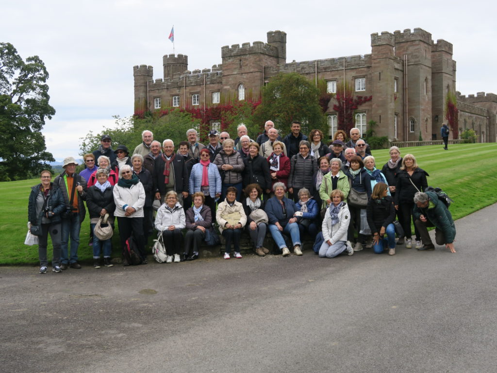 Il gruppo di parrocchiani di San Luigi Gonzaga e di Santa Maria Maddalena (ma non solo), guidati da don Stefano Votta e da don Luca Ramello, dal 12 al 18 settembre ha girato la Scozia visitando, fra l’altro, Glagow, Fort William, l’Isola di Skye, il Lago Lochness, lo Scone Palace, Inverness, Aviemore ed Edimburgo, ecc. Come d’abitudine, più che di un viaggio si è trattato di un pellegrinaggio, o meglio di un corso peregrinante di esercizi spirituali (ogni giorno Messa, Lodi, Vespri, Rosario e predicazione di don Luca sul tema della Creazione, commentando l’inizio della Genesi). Nella foto: il gruppo davanti allo Scone Palace.