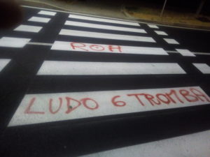 Recentementi dei vandali hanno imbrattato alcune delle strisce bianche degli attraversi pedonali presenti davanti al liceo Monti. Da qualche giorno, infatti, su alcune di esse sono comparse scritte prive di senso di colore rosso, fatte probabilmente con l’ausilio di una bomboletta di vernice spray.