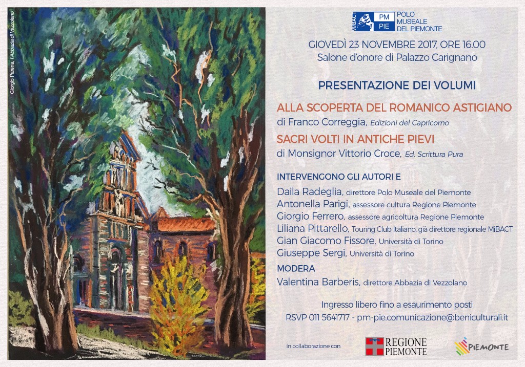 Giovedì 23 novembre 2017, ore 16.00, Salone d’onore di Palazzo Carignano, presentazione dei volumi “Alla scoperta del romanico astigiano” di Franco Correggia (Edizioni del Capricorno)