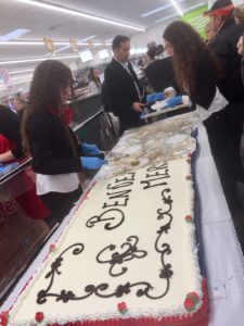 Dove c’era il vecchio mulino, ora c’è Mercatò. Inaugurato il nuovo supermercato del Gruppo Dimar a Porta Gialdo: una torta gigante ha accolto i primi clienti di una struttura da 2 mila metri quadri con ampio parcheggio e un’area verde, che cambia il volto anche viario della zona a ridosso di Piazza Europa. Una sessantina di dipendenti, orari di apertura ampi (8,30-20,30 continuato, pausa pranzo solo la domenica), 5 milioni complessivi di investimento. Nelle foto (di Luciano Berruto) Mercatò appena aperto al pubblico.