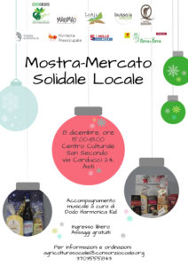 Il Centro Culturale San Secondo si colora di atmosfere natalizie, ma anche di gusti e sapori della tradizione. Venerdì 8 dicembre ospiterà il mercatino dell’agricoltura sociale “C’orto circuito”. Un’occasione di festa per scoprire, assaggiare e acquistare i prodotti tipici locali, per trovare idee regalo originali realizzate a mano, per scegliere di fare un dono diverso, alternativo e significativo.