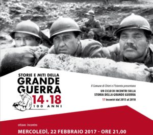 Il 6 dicembre 2017, h. 21, presso la Sala conferenze della Biblioteca Francone di Chieri si terrà il nuovo appuntamento del ciclo Storie e miti della Grande guerra con Francesco Cassata. Introduce e modera Enrico Manera. Tra le ferite inflitte ai combattenti quelle della mente hanno un posto speciale: la guerra produce la follia e il matto è il soldato smarrito sul fronte più interno di tutti. Con la scoperta dello Shell Shock (trauma da granata) e il Post Traumatic Stress Disorder la modernità della guerra si mostra anche nella psichiatria come braccio disciplinare della medicina e come scienza che, nei diversi paesi europei, si istituzionalizza e organizza in modo sistematico per ridare alle nazioni soldati pronti a obbedire, combattere, morire. Ben oltre la questione strettamente clinica la guerra cambia il mondo mentale di milioni di persone e prepara la “brutalizzazione della politica” dei decenni successivi.