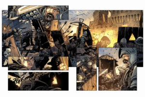 Enoch e Vietti hanno cercato disegnatori con stili adatti a questo tipo di narrazione. Mario Alberti è stato l’apripista. Oltre a disegnare il primo albo ha anche sviluppato i concept dei personaggi della serie, sotto la guida di Luca Enoch. Alberti aveva già lavorato insieme a Enoch per il mercato francese con la serie Morgana (di cui ho parlato nell’articolo sul Tex di Boselli e Alberti). Senzanima sarà caratterizzato da tavole alla francese. Alberti dichiara che ha voluto raccontare la guerra con le sue regole, in un modo che non concedesse nulla all’estetica della violenza, se pure con situazione e personaggi estremi. Il disegno sarà sporco e incasinato, ma sempre leggibile e al servizio della storia. Stessa cosa è stata fatta per i colori, opera di Andres Mossa.