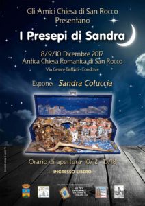 In occasione del Mercatino di Natale nei giorni 8/9/10 dicembre 2017 , gli Amici Chiesa di San Rocco presentano la mostra di Presepi “I Presepi di Sandra di Sandra Coluccia.