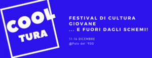 Dall’11 al 16 dicembre avrà luogo a Torino, presso il Polo del ‘900, una rassegna di eventi culturali rivolta alle giovani generazioni dal titolo “COOLTURA – Festival di Cultura Giovane”. La manifestazione, interamente ideata ed organizzata dai partecipanti al progetto 900/Giovani, sarà suddivisa in giornate, ognuna delle quali conterrà diversi eventi e sarà dedicata ad una tematica particolare: integrazione, libertà di informazione, linguaggi contemporanei, gender issues, andare oltre. Il filo conduttore di tutto il festival sarà la “cultura giovane”, formula che intende definire sia i nuovi linguaggi sia le nuove forme della cultura. Infatti, in linea con la mission del progetto, l’obiettivo della settimana sarà quello di coinvolgere attivamente il pubblico durante gli eventi, in modo tale da trasformarlo da semplice fruitore a creatore di contenuti.