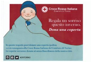 L’A.N.A. Sezione di Torino, per il tramite del Gruppo Alpini di Moriondo T.se, ha aderito in collaborazione con la CRI Delegazione di Mappano e Torino, alla campagna  “Dona una coperta”, per i senza tetto. Il Gruppo Alpini di Moriondo sarà  in Piazza Europa il giorno 11 e 20 dicembre dalle ore 15.30 alla 17.00 . I manufatti dovranno essere puliti, imbustati e in buone condizioni.
