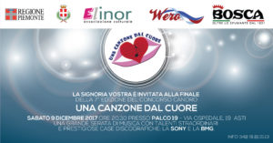 E’ tutto pronto per la Finale della settima edizione del concorso canoro internazionale “Una Canzone dal Cuore” organizzato dall’Associazione Culturale Elinor che si svolgerà questa sera, sabato 9 dicembre alle 20:30, al Palco 19 di Asti.