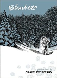 “Blankets è un monumento alla quotidianità”, così ha definito Ilaria Urbinati il lungo romanzo autobiografico scritto e disegnato da Craig Thompson, portato inizialmente in Italia da Coconico. Scritto all’età di 27 anni (la prima pubblicazione in America è del 2003), racconta infanzia e adolescenza dell’autore. Ambientato in Michigan, parla della condizione difficile di un giovane sensibile e solitario, della famiglia cristiana evangelica, di un padre autoritario e dei mille problemi che si trova ad affrontare. Il giovane Craig trova conforto e sfogo nella religione, che da una parte gli da una speranza per il futuro, ma con il tempo porterà una moltitudine di interrogativi.