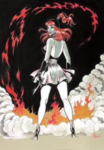 Giovanni Romanini è uno dei più eclettici disegnatori italian, nonché storico collaboratore di Roberto Raviola – in arte Magnus – a cui si alternò nella realizzazione delle avventure di Kriminal, Satanik e Alan Ford, personaggi creati da Max Bunker. Nella sua lunga carriera ha realizzato albi erotici e neri per diverse collane della Edifumetto, tra cui Ulula, Wallestein, Bionika e Lady Domina, ma anche diverse storie per Topolino. Dal 1995 lavora per la Sergio Bonelli Editore, prima sulla collana antologica Zona X, poi su Martin Mystère (ultimo albo pubblicato “Green man, l’uomo verde”, n. 349 di febbraio/marzo 2017 su testi di Alfredo Castelli ed Enrico Lotti).