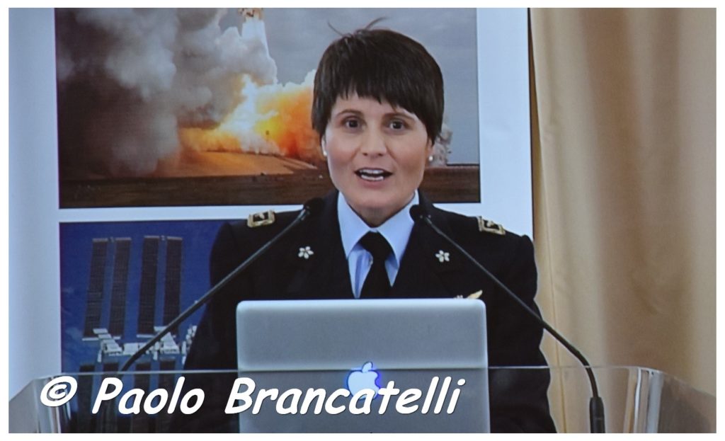Dopo gli interventi delle autorità politiche, militari e civili, ha raggiunto il microfono l’astronauta dell’ESA (Agenzia Spaziale Europea) che ha colpito ed entusiasmato tutti i presenti con la sua semplicità e umiltà, anche nello spiegare la sua missione nello spazio durata 199 giorni. Dopo aver ringraziato tutte le autorità presenti, la Fondazione Cavour e gli Amici della Fondazione Cavour per averla scelta, ha avuto parole di riguardo per gli alunni e le insegnanti dell’Istituto Comprensivo di Santena e merita riportare alcuni stralci del suo intervento: